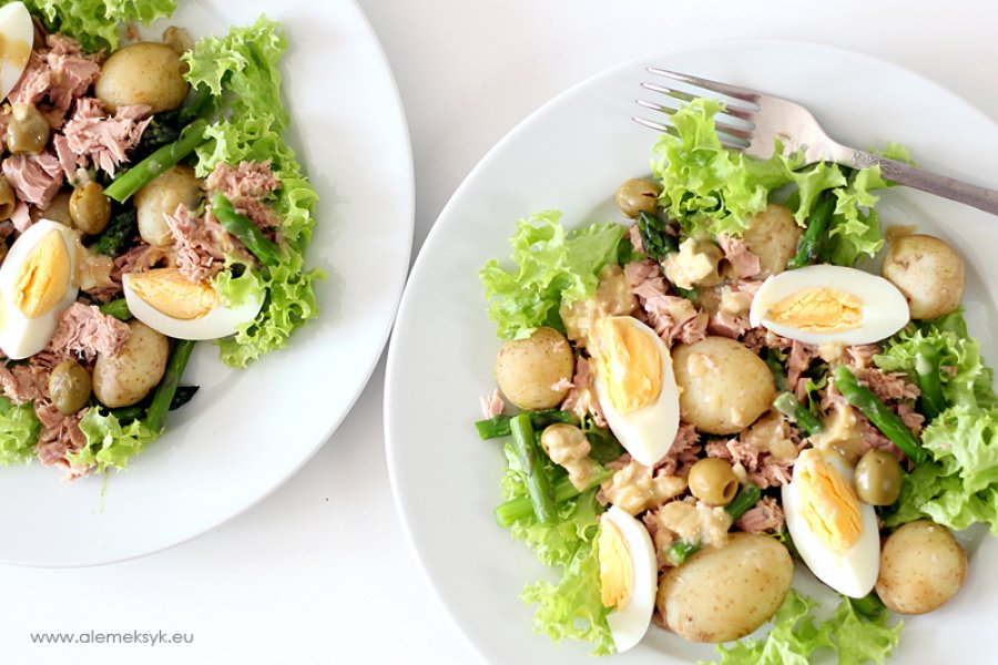 - Sałatka ze szparagami i tuńczykiem w dressingu vinegret