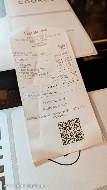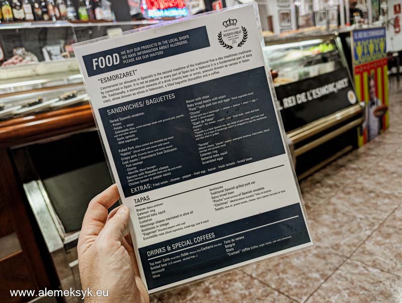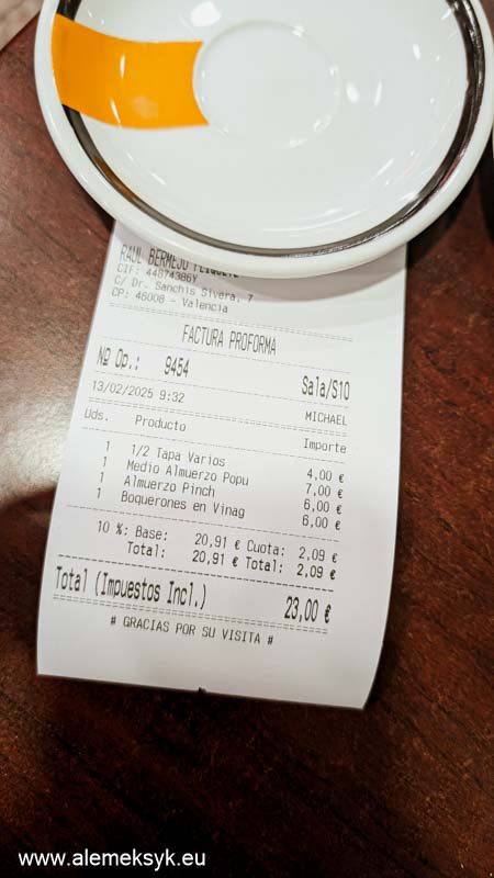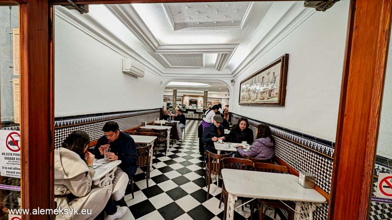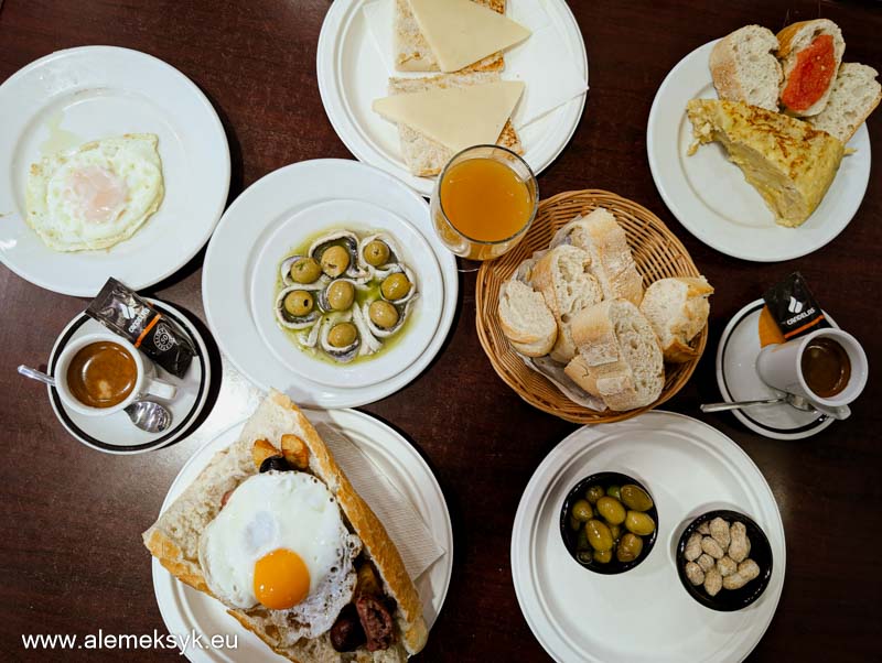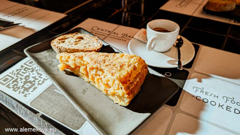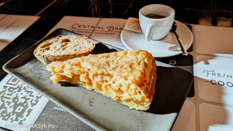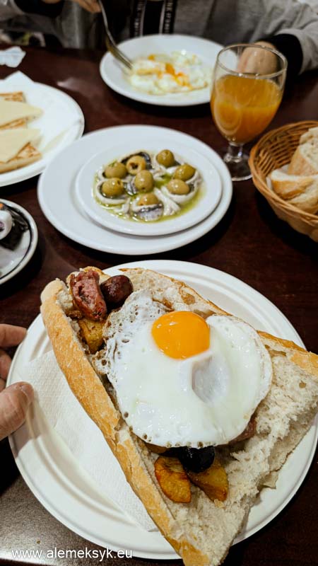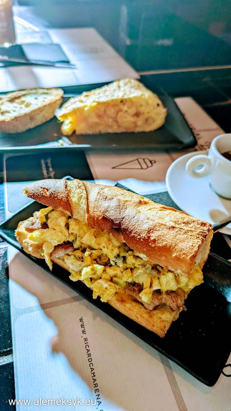 Nie bylibyśmy sobą gdybyśmy takiego miejsca nie odwiedzili i nie popróbowali tego i owego ? Zamówiliśmy tu bocadillo – prostą (popularną w Hiszpanii kanapkę), lecz niezwykle smakowitą bagietkę z jajecznicą i chrupiącym boczkiem oraz fenomenalną tortillę z ziemniakami i cebulą – miękką, wilgotną i niezapomnianą w smaku. Codziennie zmieniające się menu dnia sprawia, że nawet stała oferta nabiera niepowtarzalnego charakteru, a aromatyczna kawa na śniadanie idealnie dopełnia tę kulinarną przygodę.