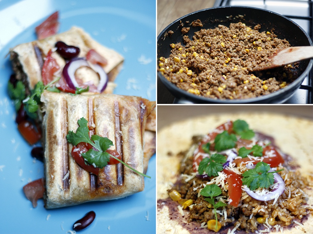 Burrito to tortilla wypełniona sycącym farszem – zwykle z mięsa i fasoli. Podobno został wymyślony w czasie rewolucji meksykańskiej. Jeśli nie mieliście jeszcze okazji skosztować to musicie spróbować. Tym razem wykorzystaliśmy pastę fasolową – bardzo popularną w Meksyku, czerwoną fasolę oraz mielone mięso wołowe. Do tego oczywiście świeże pomidory i kolendra. To wszystko w towarzystwie ryżu po meksykańsku, a na koniec zawinięte w chrupiącej tortilli. Dla zaostrzenia smaku można dodać papryczki jalapeno.