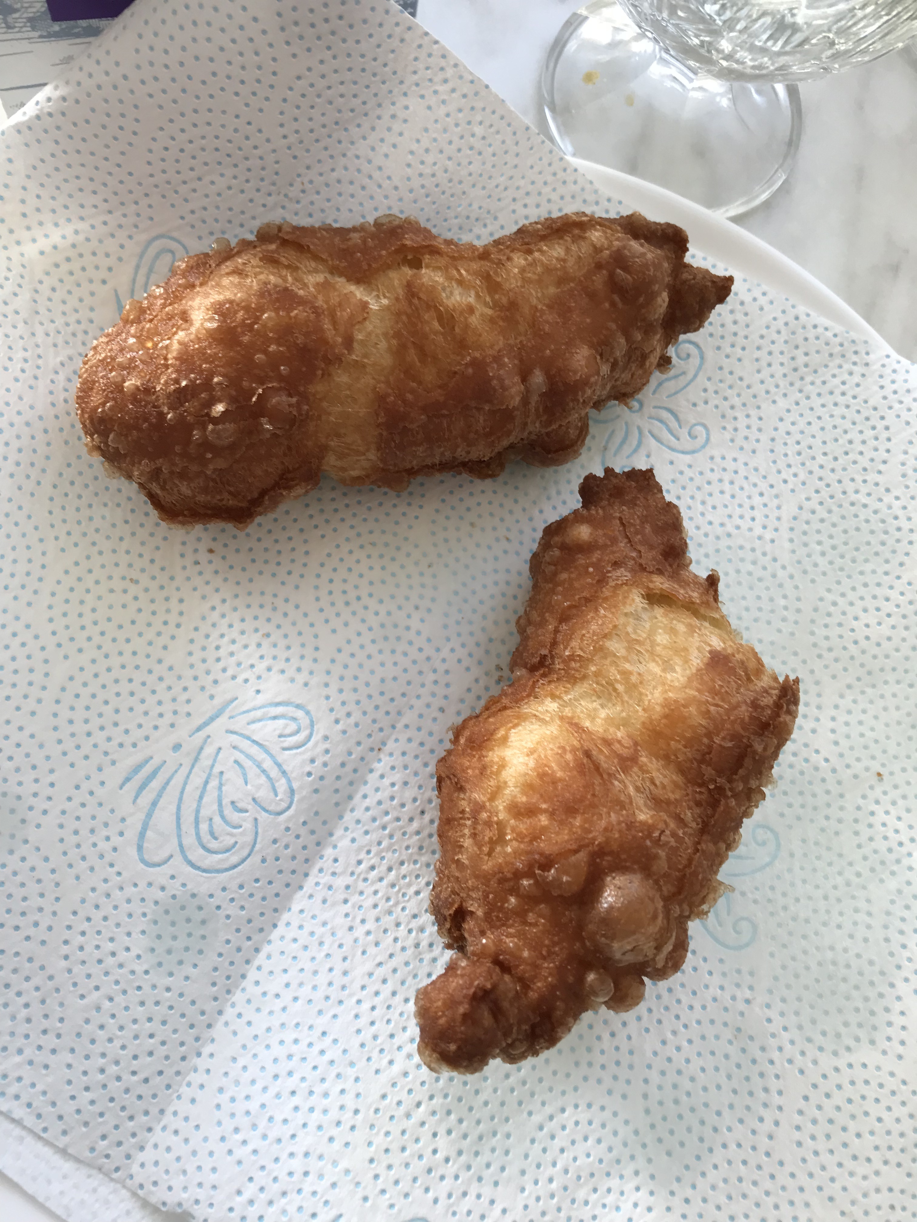Smażymy na złocisty kolor. Gotowe churros wyjmujemy z oleju i kładziemy na papierowy ręcznik aby odsączyć tłuszcz.