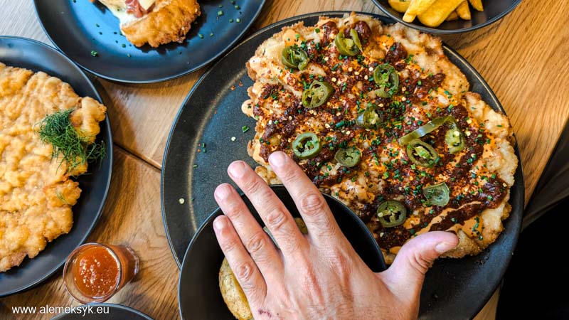 Podczas naszej wizyty każdy spróbował czegoś innego: ja wziąłem wersję z jalapeño, Magda postawiła na klasyka, a Tosia – hawajskiego. Efekt? Niby ta sama baza, ale różne dodatki sprawiły, że każdy talerz smakował inaczej. I to właśnie największy atut Big Schabowskiego – prosty koncept, który daje mnóstwo kombinacji.