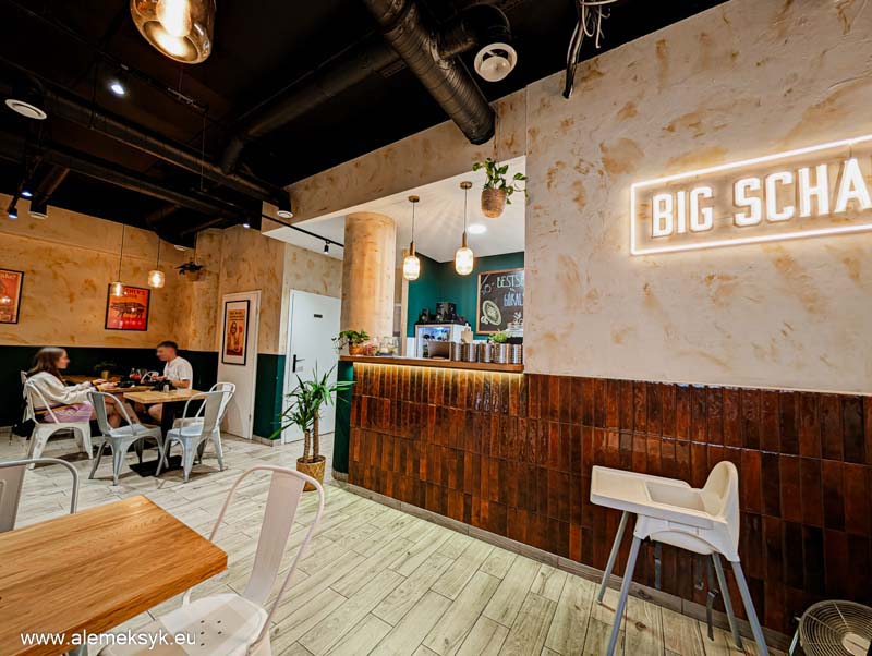 Big Schabowski to miejsce, gdzie nie trzeba się stroić. Obsługa jest wyluzowana, nie ma tu zbędnego nadęcia ani „ą-ę”. Można wejść w jeansach, z dzieckiem pod pachą, a nawet wpaść na szybki lunch w przerwie pracy.