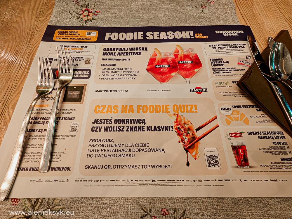 Olsztyn pojawił się u mnie trochę z zaskoczenia. Taki szybki wypad, bez wielkiego planowania, bez listy „must eat”. Po prostu byliśmy na miejscu i trzeba było coś zjeść. I tu wchodzi Restaurant Week, cały na biało. Idealny moment, żeby za rozsądne pieniądze sprawdzić restaurację, która normalnie mogłaby być „na specjalną okazję”.